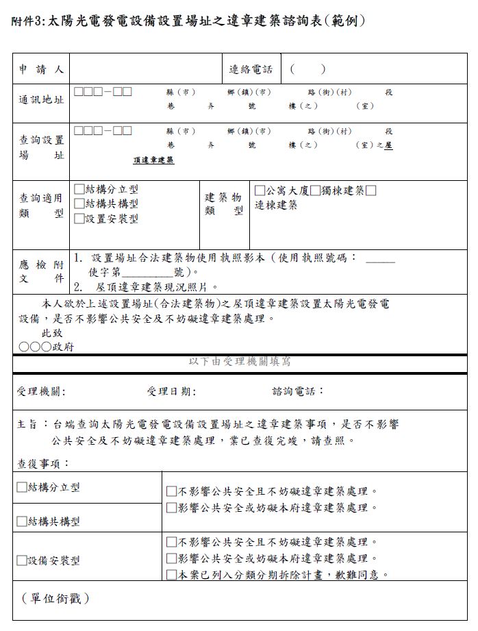 *此諮詢表單之回覆函文為申請太陽光電設備同意備案之必備文件,請妥善保存。
