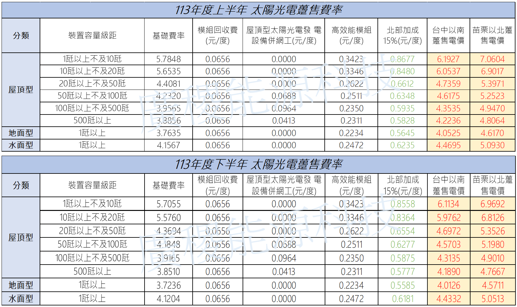 113年太陽光電躉售費率終於出爐了! 雖然太陽能板的價格近期走低,但是考量整體材料受通膨以及人工費用上升,113年的台電躉售費率相較於112年做了些微的調降。