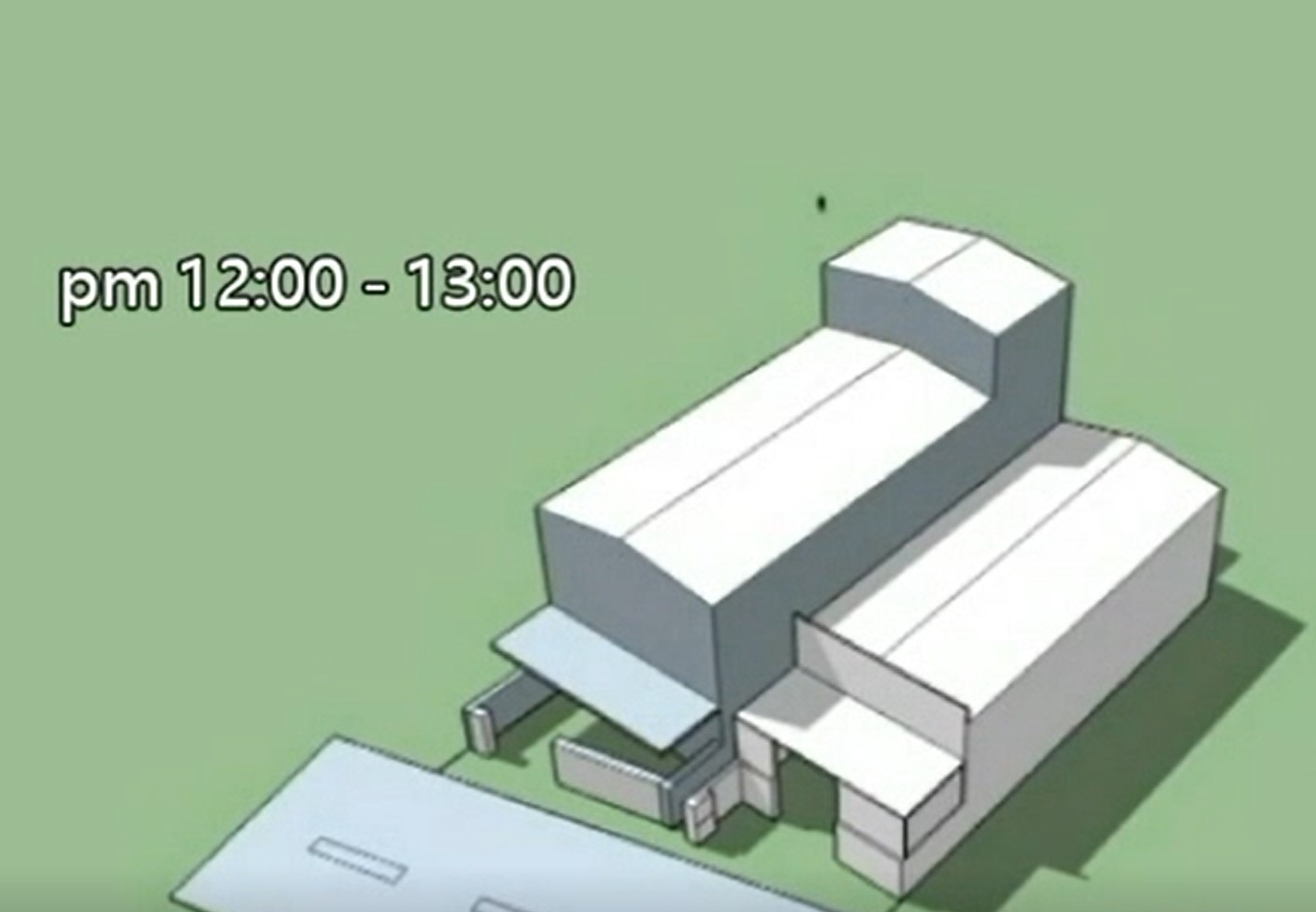 以下為廣稷能源科技為客戶所做的陽光模擬讓大家參考喔! 隨著時間的變動,位在西向方位(左邊)的廠房,於上午11點後開始遮住太陽,並對右邊的廠房產生陰影,陰影會大大的影響右側廠房的發電及長期可靠度。